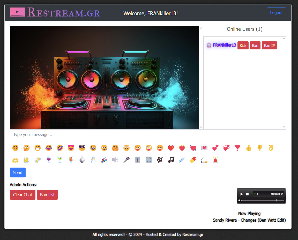 Node.js backend for media streaming management with full UI panel.