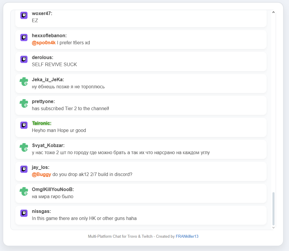 PHP & AJAX Live chat for twich & trovo at the same window/time